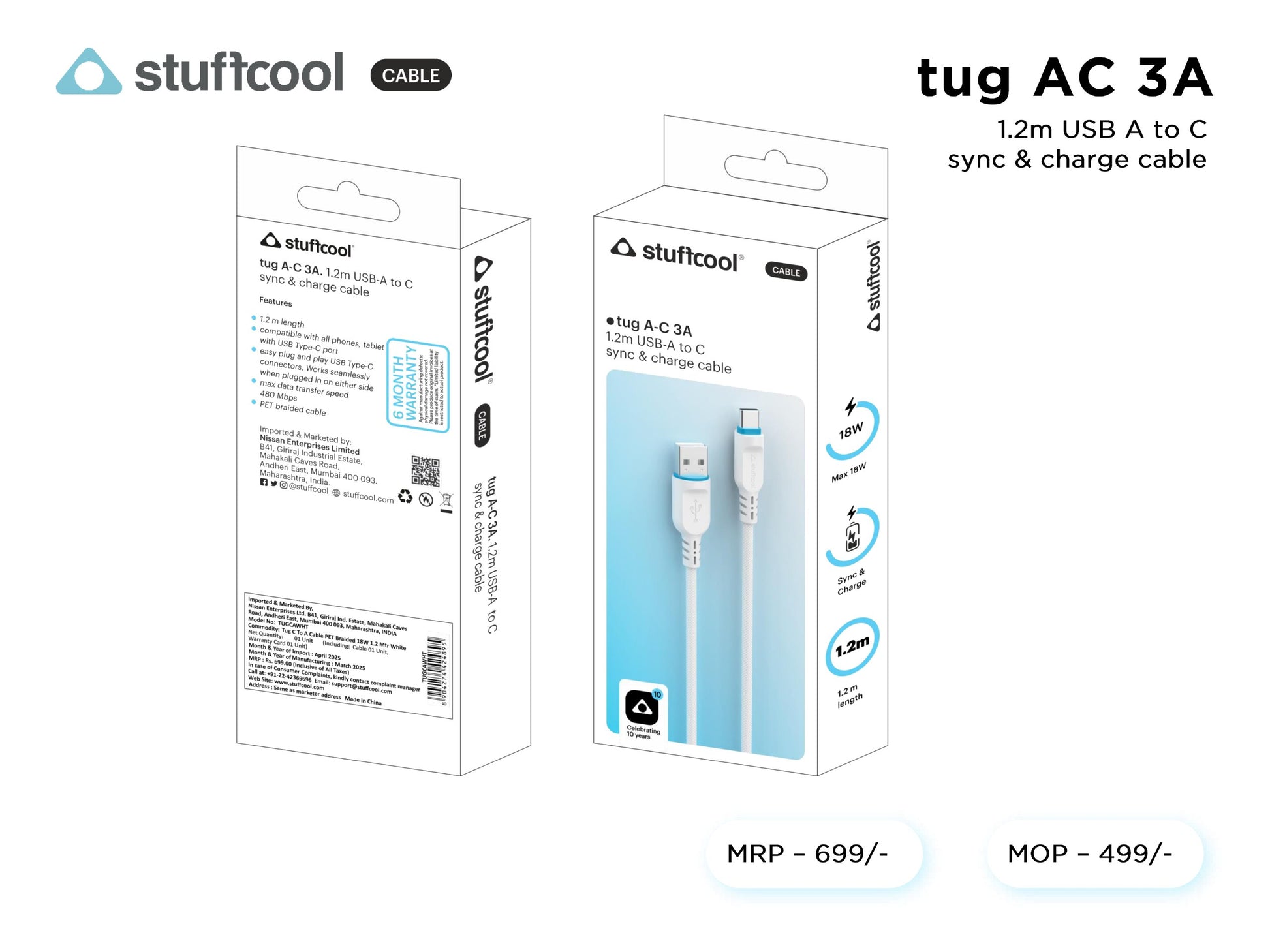 tug AC 3A 1.2M USB A to C CHARGE CABLE USB TO C stuffcool