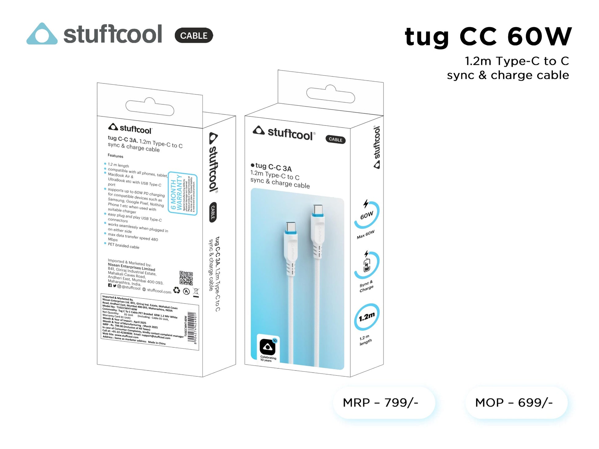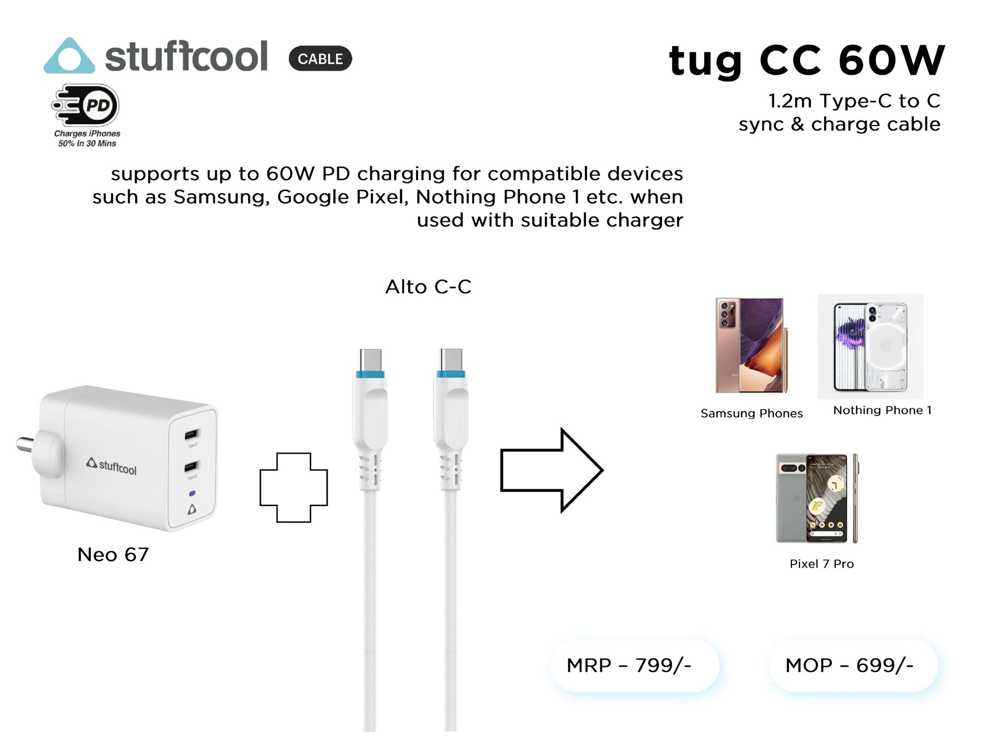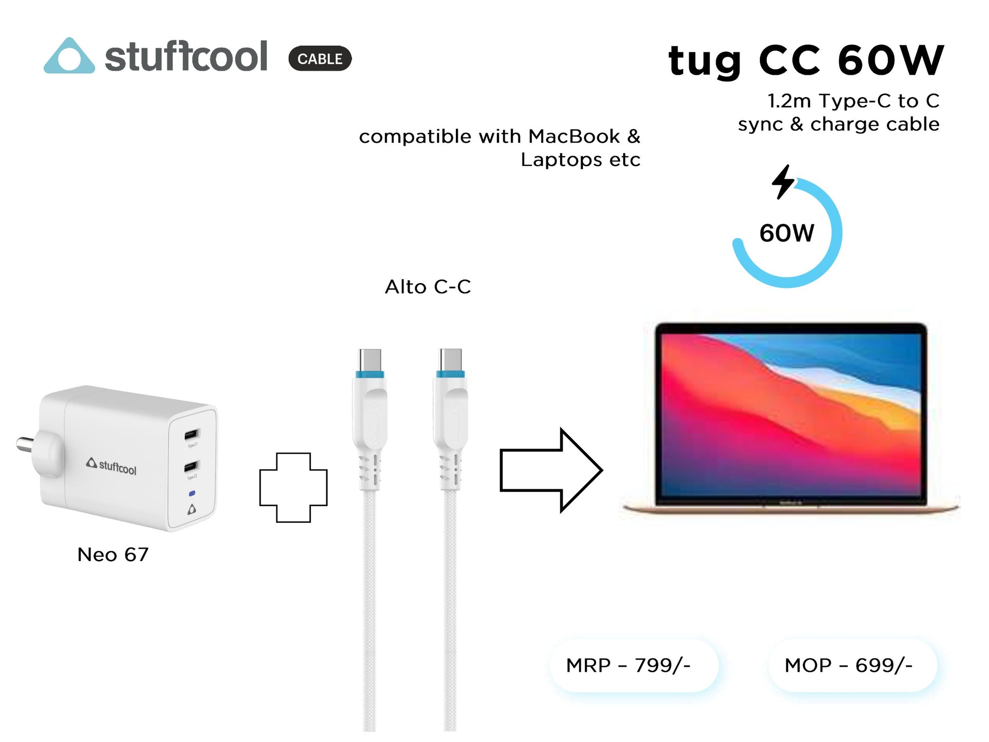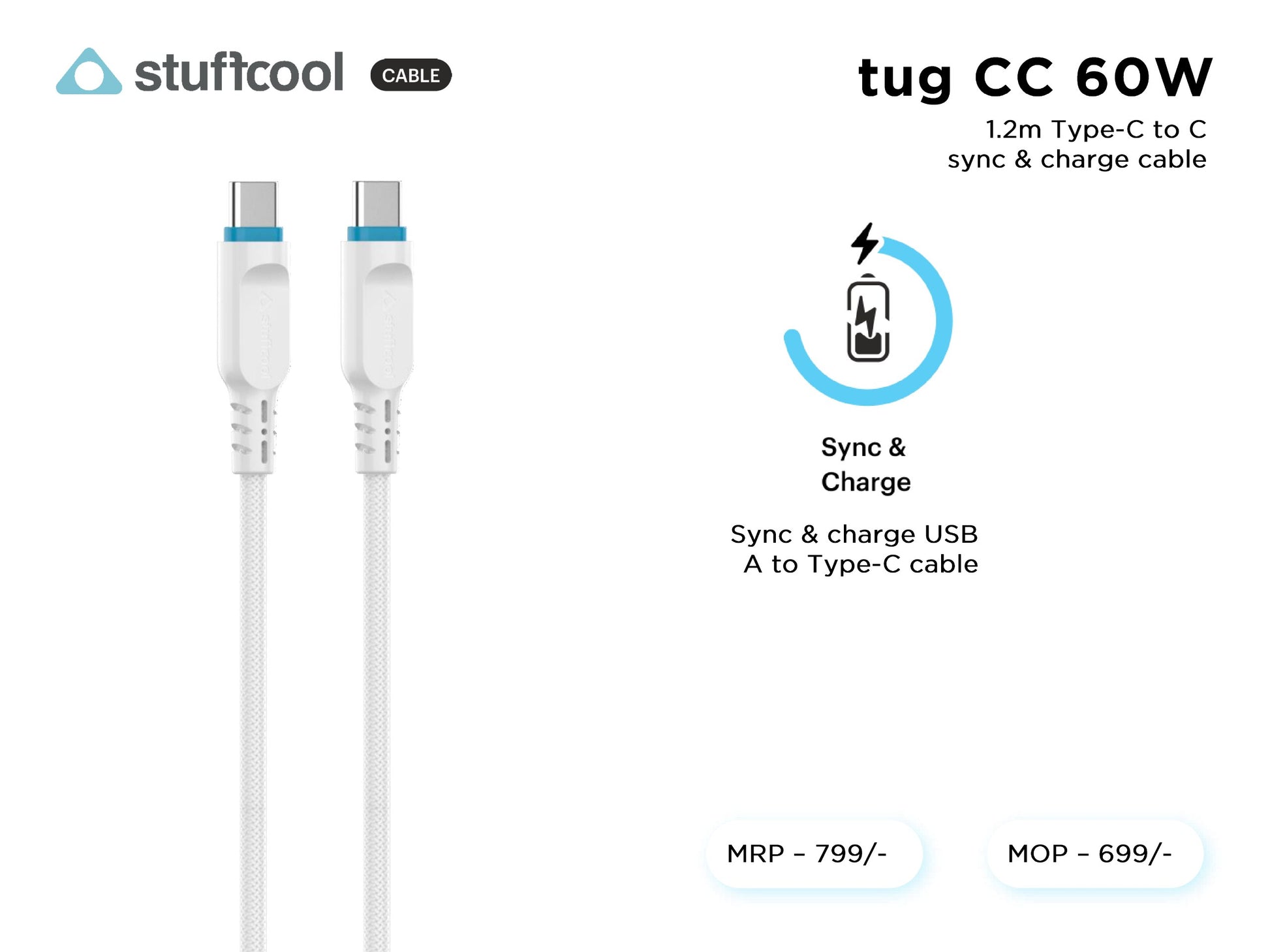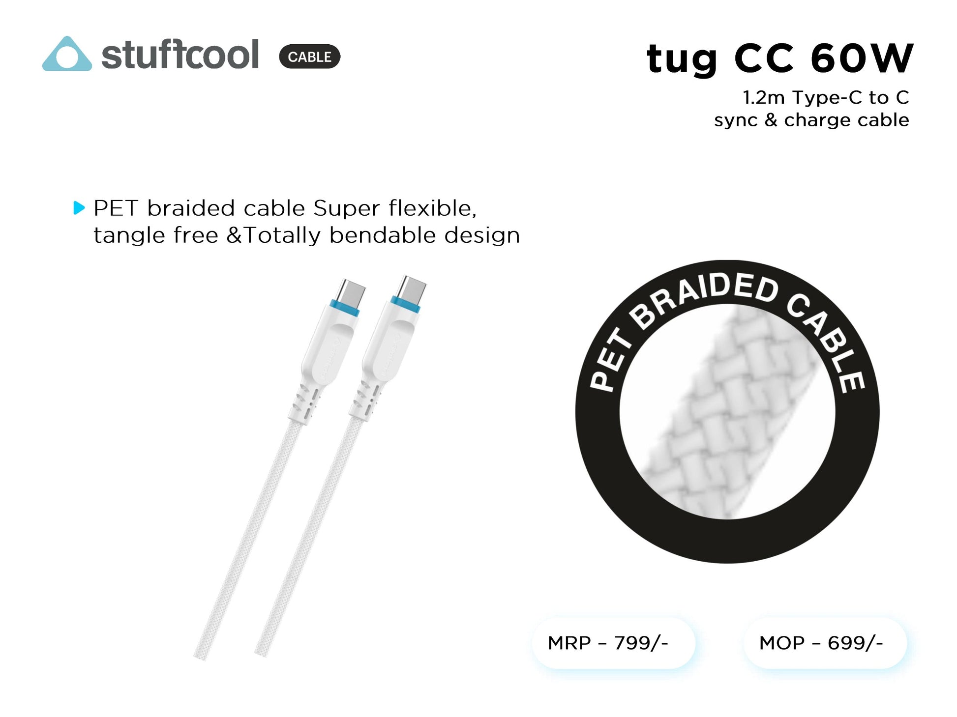 tug C-C 60W (3A) 1.2M Type-c to c Cable stuffcool
