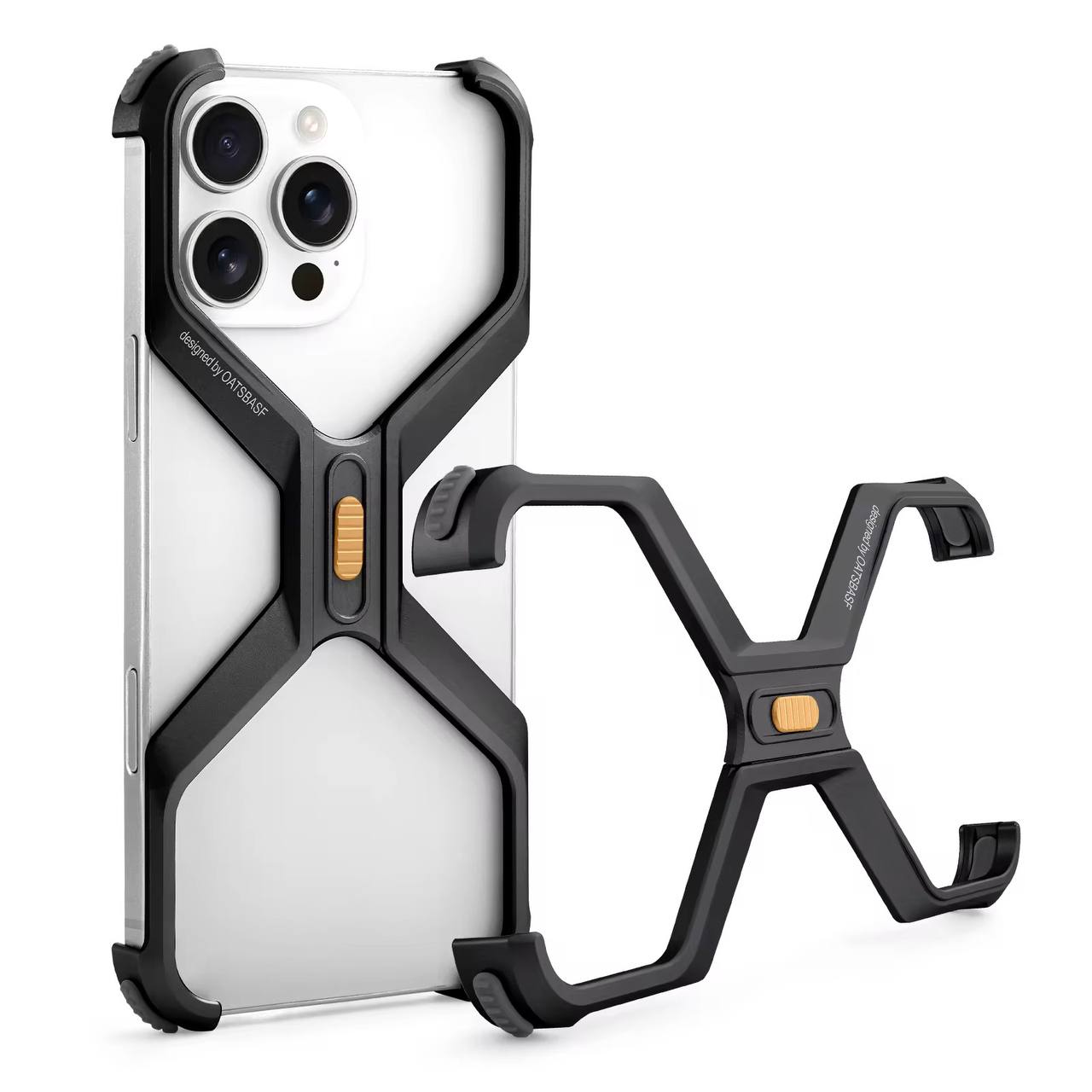 X-Shaped Frameless Shockproof Metal Phone Case foriPhone 16 Pro Max Aluminum Alloy Minimalist Protective Cover for iPhone 16 Pro